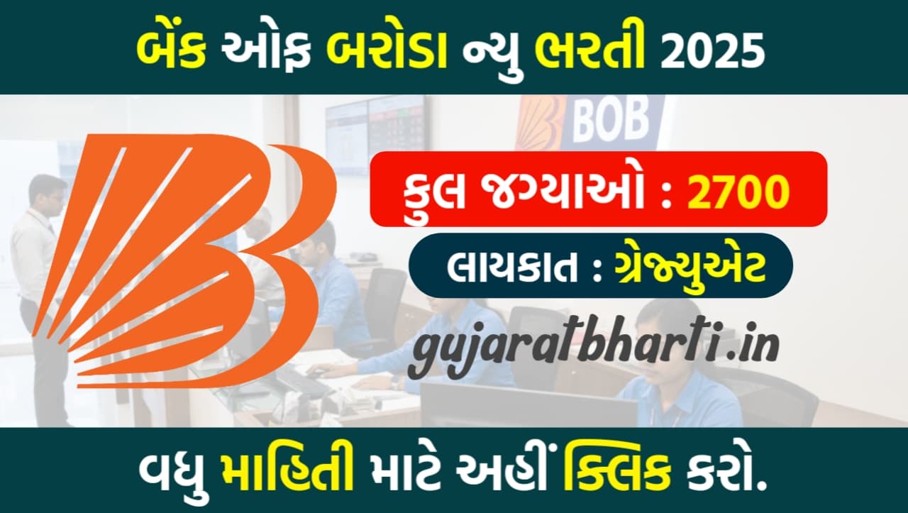 બેંક ઓફ બરોડા ભરતી 2025 , કુલ જગ્યાઓ 2700 – Bank of Baroda bharti 2025